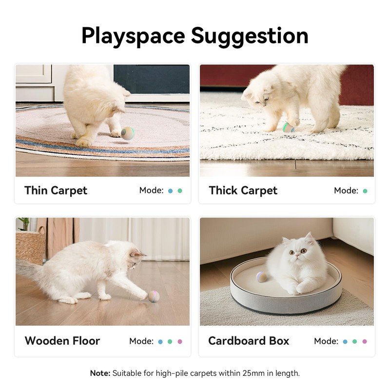 - 3 Interactive Modes: You can easily switch modes (Hybrid, Bounce, Roll) to match your cat's play style and energy level. This toy offers mental stimulation and endless fun, perfect for keeping your cat happy and entertained.