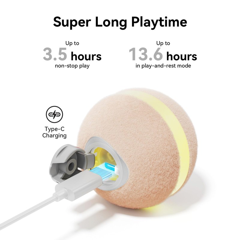 - Super Long Playtime: The Wicked Ball M3 enters a 30-minute sleep period after 10 minutes of play to avoid exhaustion and ensure moderate exercise for your pet. If being touched while sleeping, it resumes play. (non-stop play: up to 3.5 hrs; play-and rest: up to 13.6 hrs)