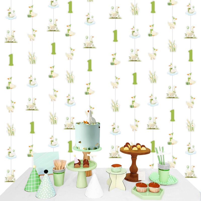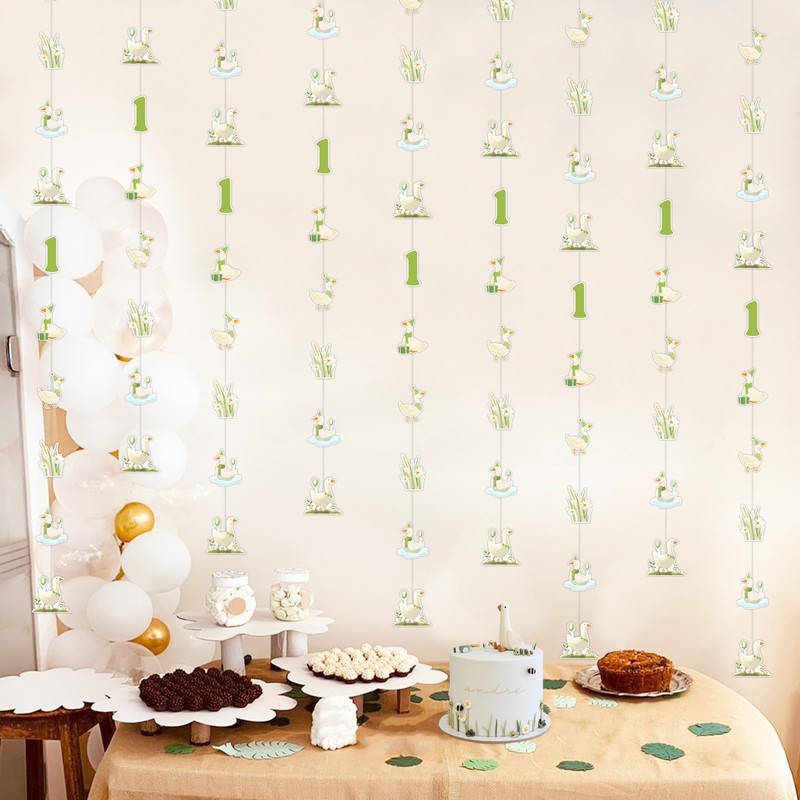 - Widely Used: Goose ceiling banners are perfect for any scene, whether it’s a baby’s 1st birthday party and goose theme first birthday party. You can even use them as farm animal themed room decor.