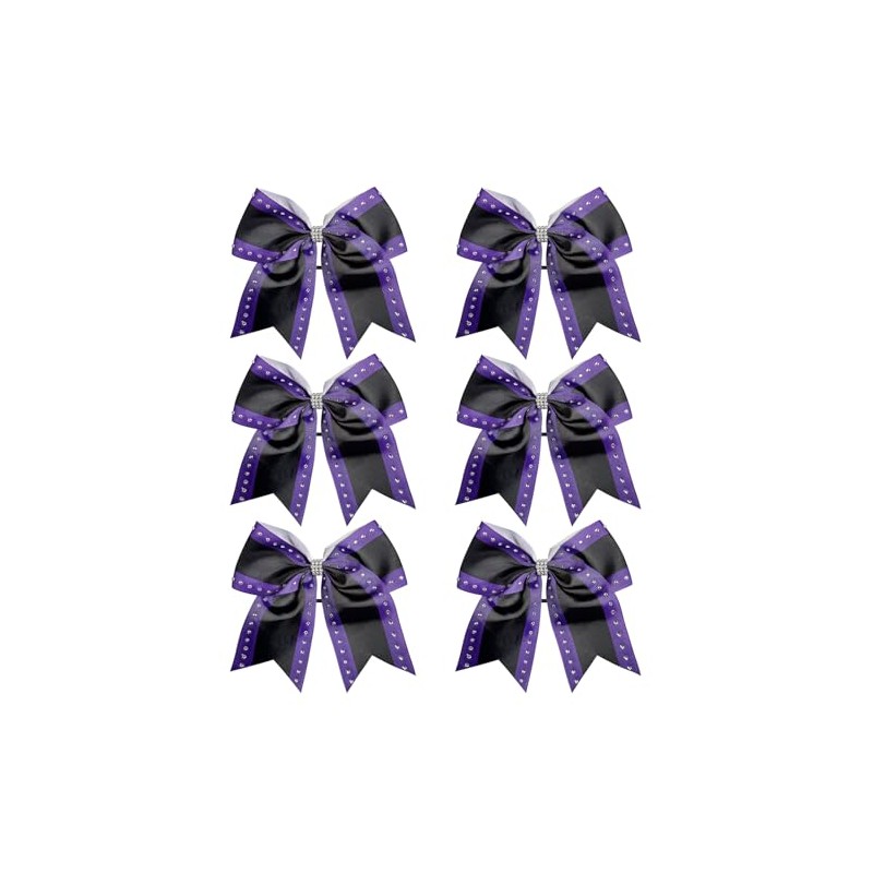 Cheerleader Bows 8 Inch Comb Color Cheerleader Ponytail Holder with Rhinestones, Set of 6 (Purple/Black)