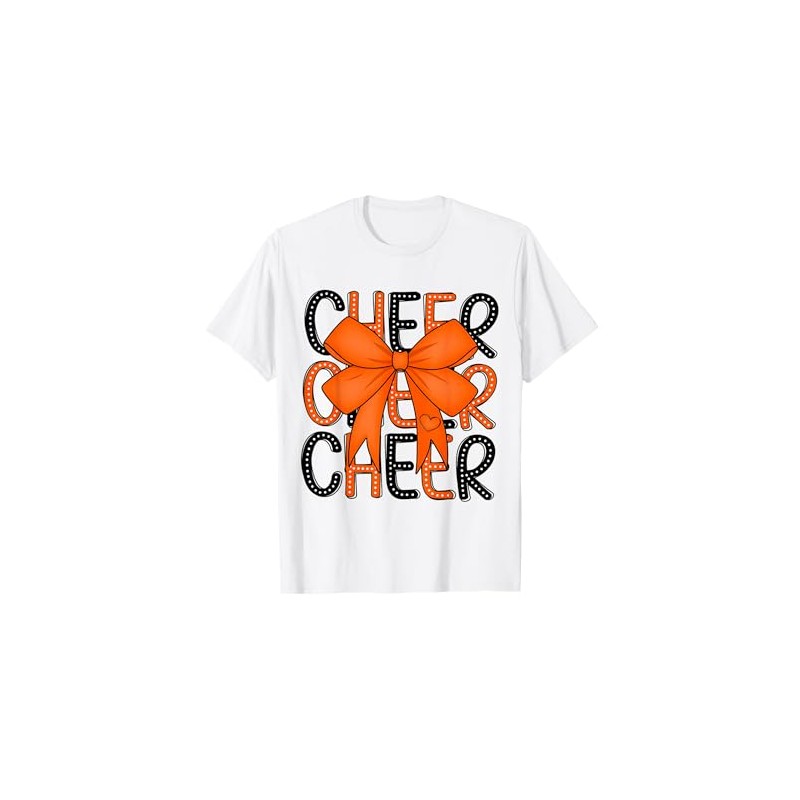 - Cheerleading Coquette Cheer Black Orange T-Shirt, cheerleader shirts for girls, cheer shirts for girls, cheerleader shirt, cheer t shirts for girls, cheerleading shirt, girls cheer shirt, cheer shirts for cheerleaders.