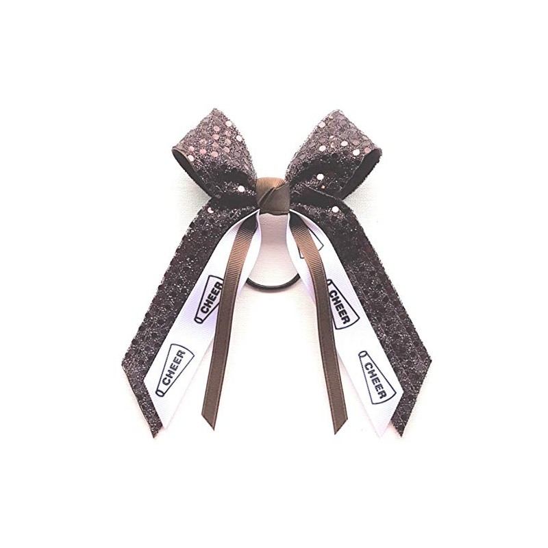 Cheerleading Soft Touch Sequin Hair Bow, Made in the USA, White Pony Band (Brown)