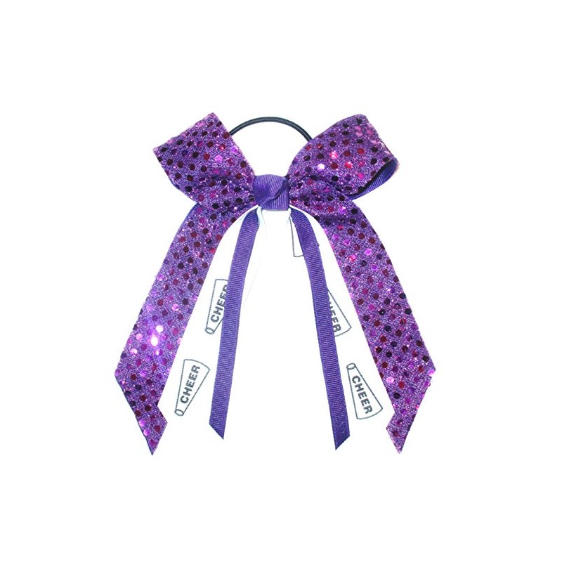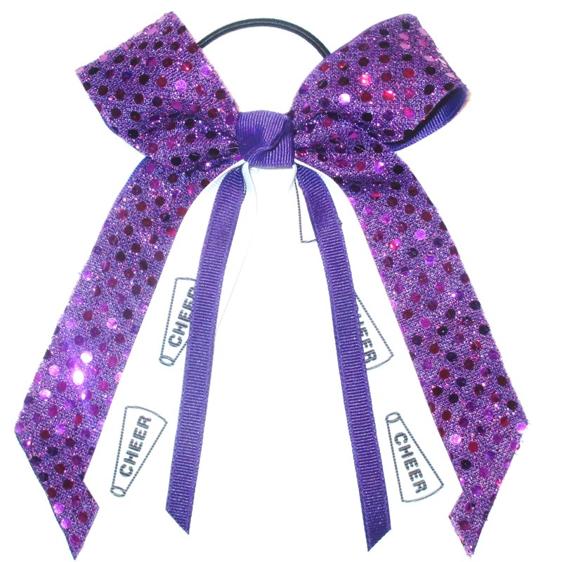 Cheerleading Soft Touch Sequin Hair Bow, Made in the USA, White Pony Band, (Purple)