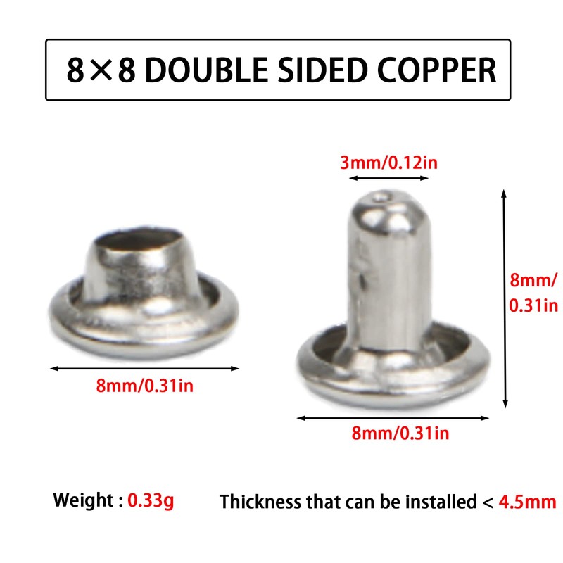 - What you will get: The package includes 320pcs 8mm double cap rivets, providing ample supply to meet your various DIY craft needs.