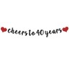 Cheers to 40 Years Banners, Hello 40/40&Fabulous Bunting Sign, Happy 40th Birthday/Wedding Anniversary Party Decorations Supplies, Red and Black Glitter