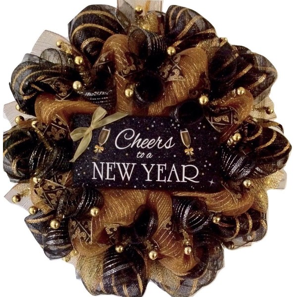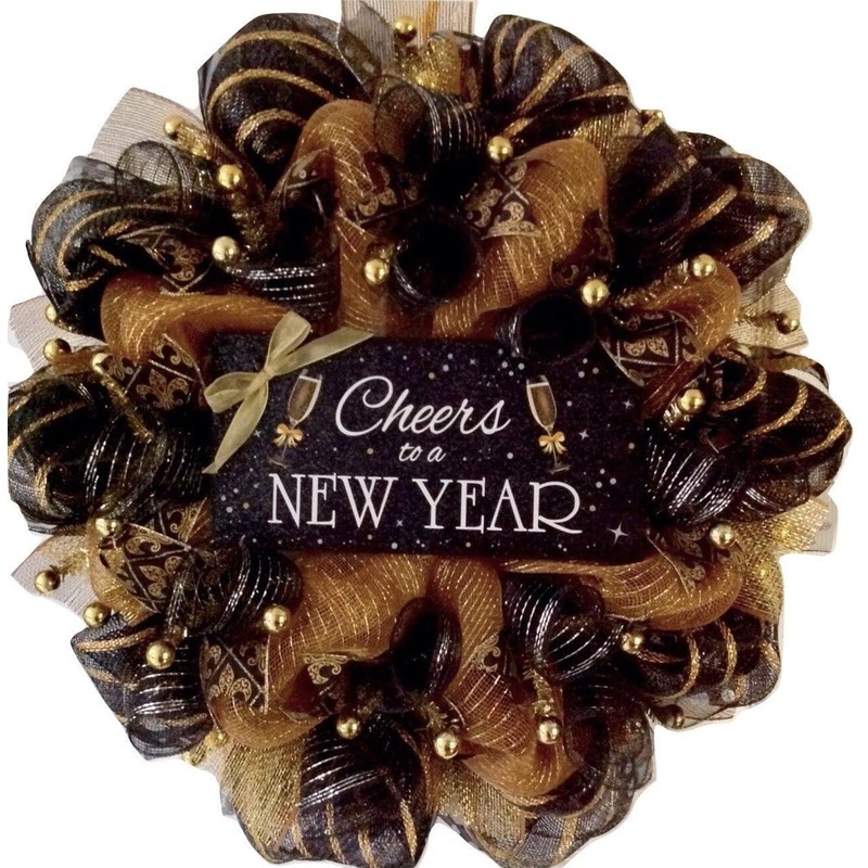 Cheers To A New Year Handmade Deco Mesh New Years Wreath