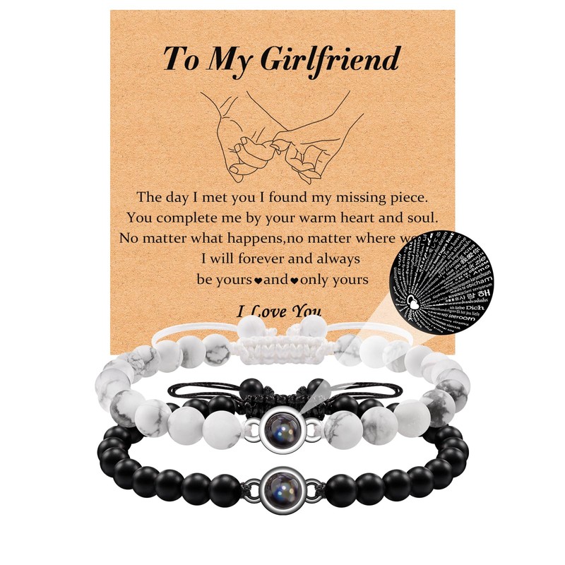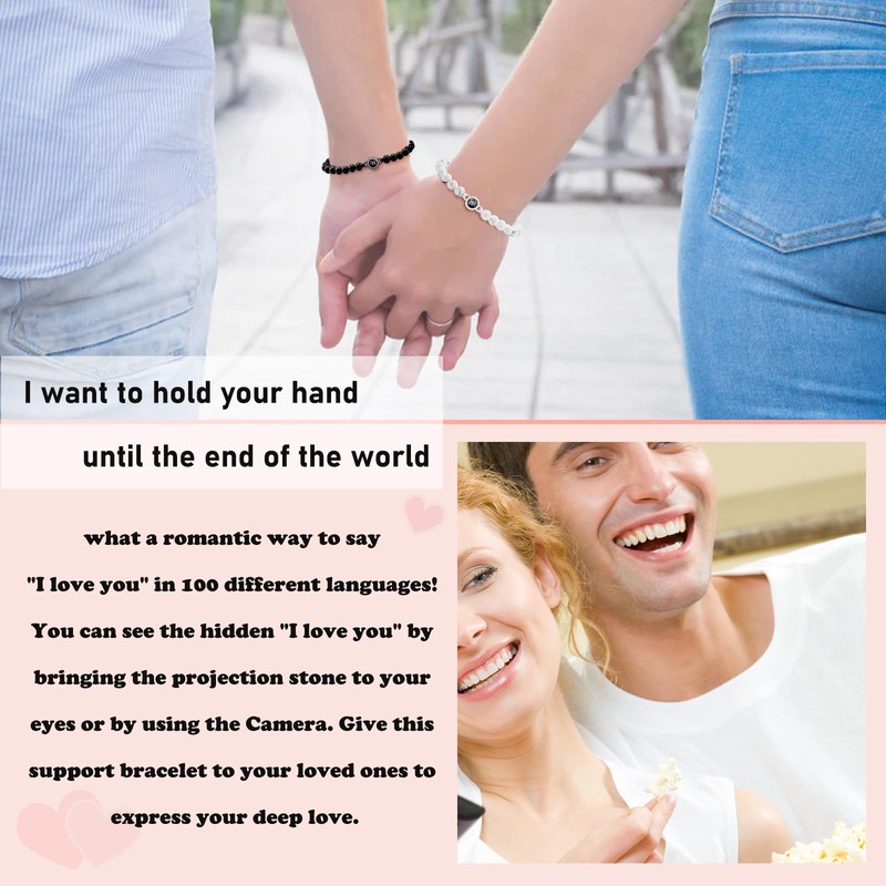 - GIFTS FOR COUPLES: This matching bracelet is designed for love. Our secret projection bracelets come with a gift box, and a message card, a great way to show your love. Sweet love gifts for Boyfriend Girlfriend Husband Wife on Valentine's Day, Christmas, Birthday, Anniversary, or other romantic surprises.