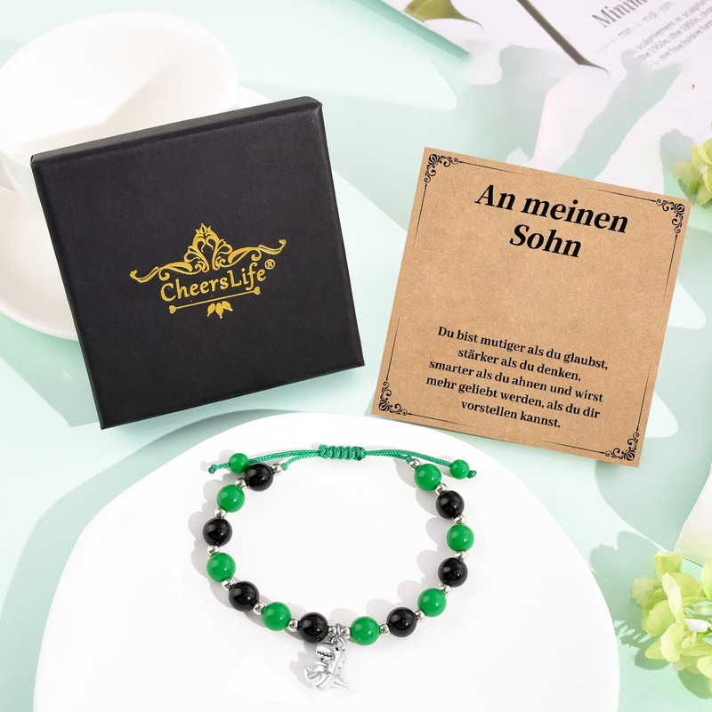 CheersLife To My Son Bracelet Son Gifts from Mum Dad, 5 6 7 8 9 10 11 12 13 14 15 16 17 18th Birthday Boy Dinosaur Gift for Son, Christmas for My Son Gift, Mother Son