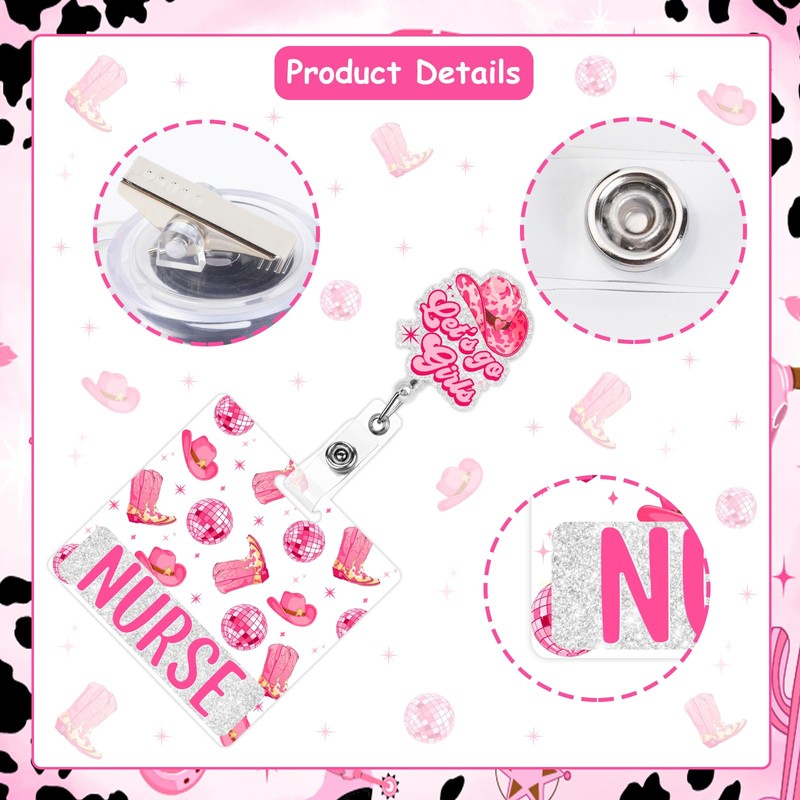 - Unique Design: This nurse badge holder have a pink color, with cowgirl element patterns printed on the badge buddy, which add some fun to your life. The badge buddy is glittering, which will make you more charming. It is very practical and can be hung in different places to add a sense of fashion. You can use our badge buddy to reflect your personal style.
