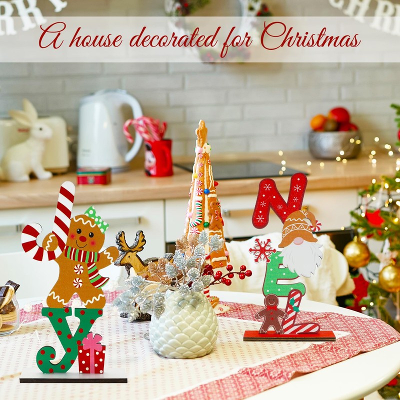 CHEERYMAGIC Christmas Table Decorations, Christmas Wooden Table Sign Xmas Tabletop Decorations Christmas Gnome Centerpiece Tabletop Signs for Home Party Decoration A4ZMBJ (Noel)