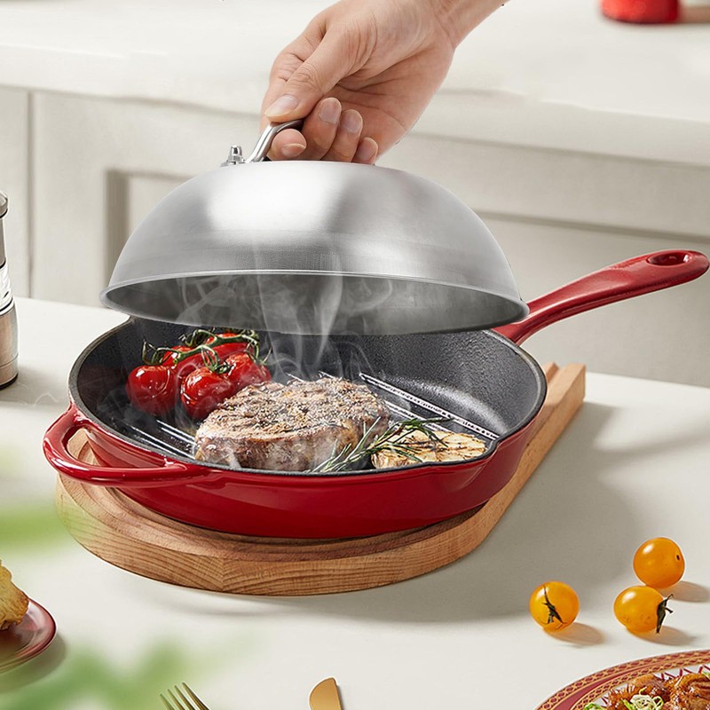 - Optimal Moisture Lock: With a curved dome structure, it promotes even heat flow for melting cheese or caramelizing while sealing in flavor and preventing dryness during cooking