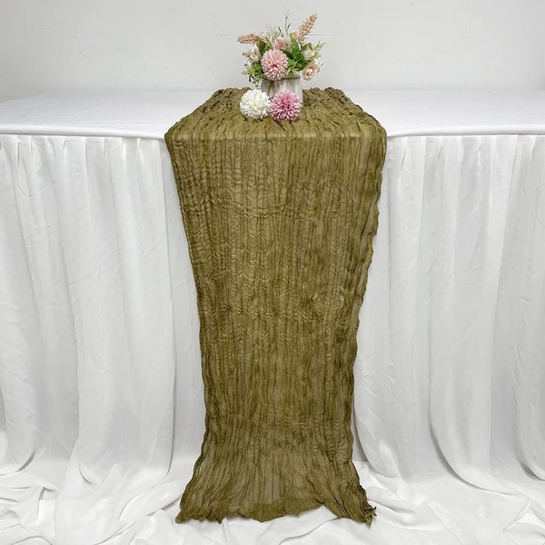 Cheesecloth Gauze Table Runner,Gauze Event Centerpiece Runner,Bridal Shower Runner,Rustic Wedding Table Decor (Olive Green, 13Ft Length)