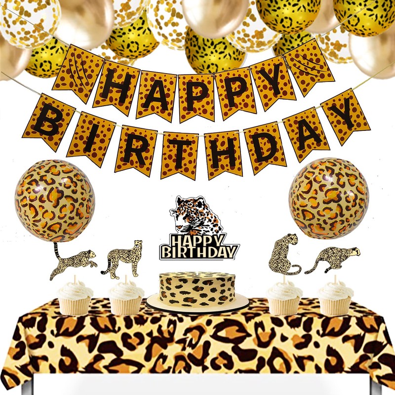 Cheetah Happy Birthday Banner, Cheetah Birthday Decorations, Leopard Party Decorations, Animal Birthday Party Decorations | Safari Party Decorations Tablecloth for Boy Girl Baby Shower Decorations…