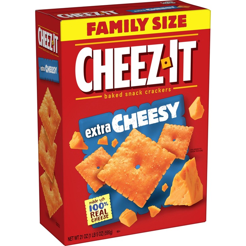 Cheez-It Cheese Crackers, Baked Snack Crackers, Lunch Snacks, Family Size, Extra Cheesy, 21oz Box (1 Box)