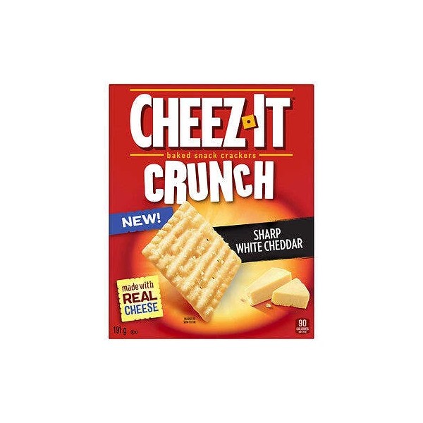 Cheez-It crunch sharp white cheddar crackers are made with real cheese to bring you that irresistibly cheesy, sharp white cheddar flavour!
