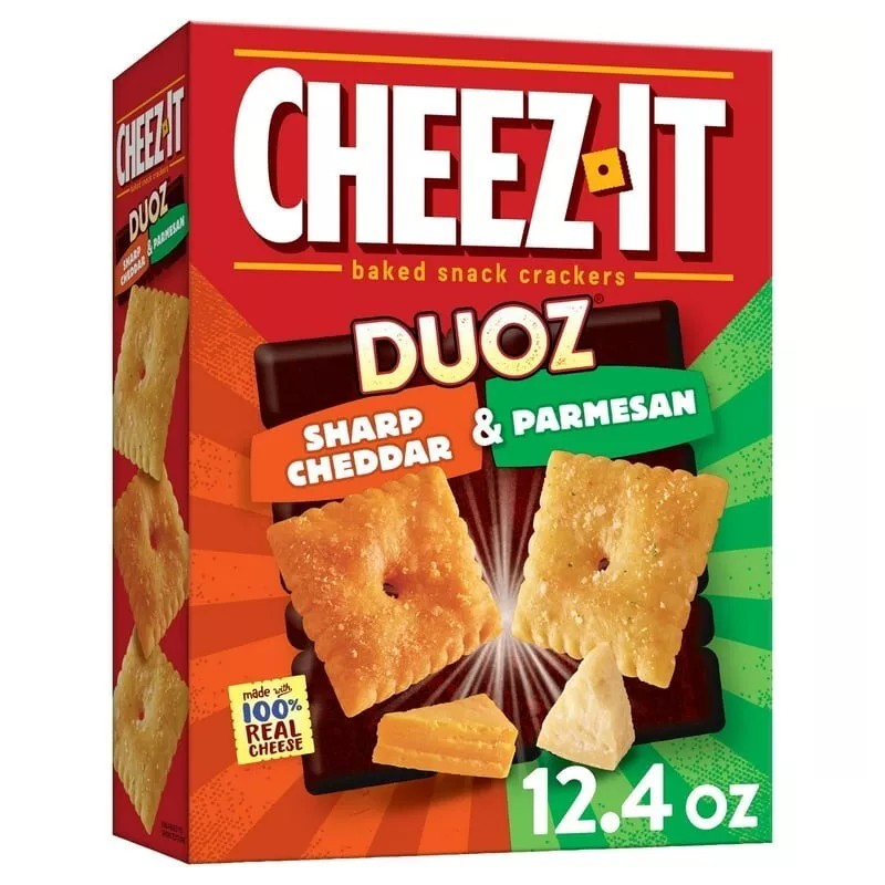 Cheez-It DUOZ Sharp Cheddar and Parmesan Cheese Crackers 12.4oz Box.