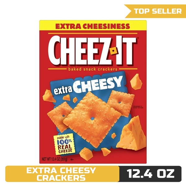 Indulge in the outrageously cheesy and irresistibly crunchy flavor of Cheez-It Extra Cheesy Cheese Crackers. Made with 100% real cheese and baked to crispy perfection, these snack crackers offer a cheesy explosion with every bite. Perfect for game nights, school snacks, movie marathons, or any snacking occasion, Cheez-It Extra Cheesy crackers are a hit across all ages. Their extra cheesy goodness and light, crispy texture make them an instant favorite, ideal for packing in lunches, snacking on the go, or sharing with friends and family. Dive into a box of these shelf-stable, extra cheesy delights and experience the bold taste that only 100% real cheese can provide. Whether it's a solo snack or a tasty addition to your party spread, Cheez-It Extra Cheesy Cheese Crackers are sure to satisfy your cheese cravings.