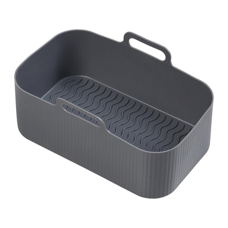 Chef Aid Rectangle Air-Fryer Liner, 19.5cm X 12.5cm X 7cm with grooved base for Increased air-flow, Easy Cleaning, Grey