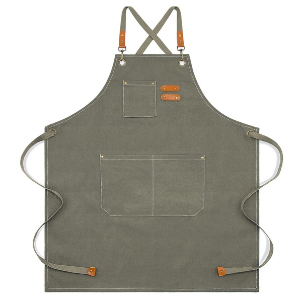 Chef Apron, Apron for Men Women with Pockets Cotton Canvas Cross Back Heavy Duty Adjustable Work Apron (Graygreen)