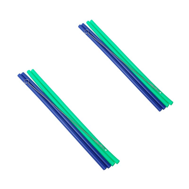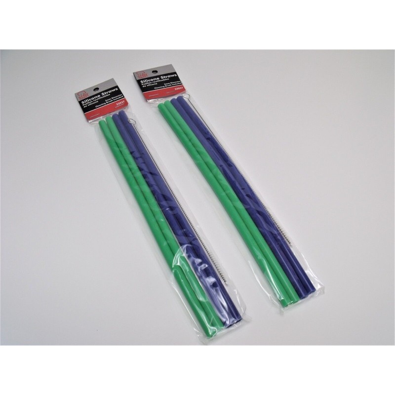 Chef Craft Reusable Premium Silicone Drinking Straws- 8 Straws & 2 Brushes - BPA Free