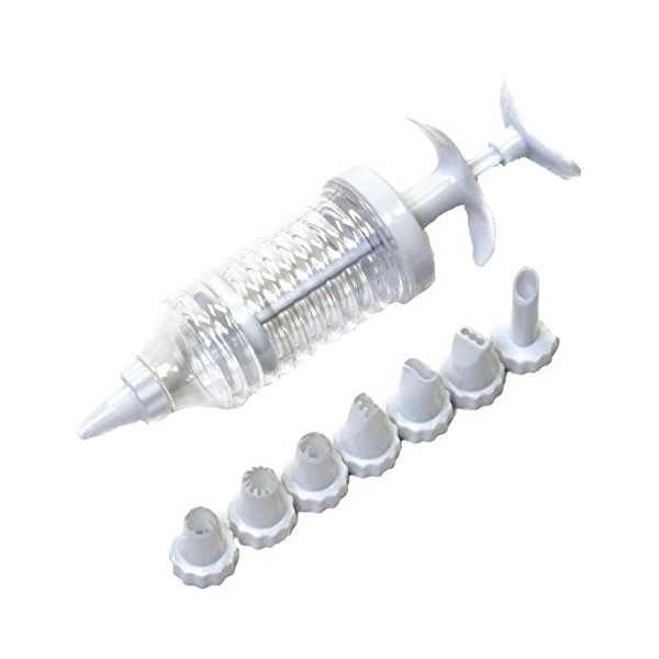 Chef Craft Sugar Cookie Icing Syringe with Tips 9pc 7" Baking Utensil, White