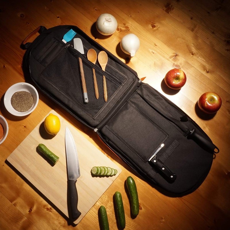 - 🔪 PERFECT FOR PROFESSIONALS & STUDENTS - Looking for chef knife bags and cases? Your search ends here. Knife bags for chefs professional head chef, sous chef, line cook or culinary student. An ultimate chef knife case to carry your money-making tools. The discrete design shows no knives, so no one will know the expensive knives you’re carrying inside this chef backpack tool bag. Solid build, compact size, spacious, secure storage, modern design—all the values a chef wants.