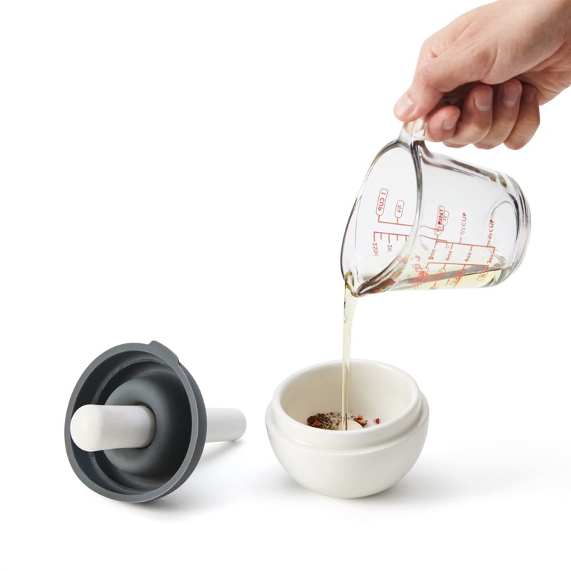 - NO MESS SPLASH GUARD: The silicone splash guard allows you to vigorously mix wet ingredients like oil with dry spices, while completely containing the mixture inside the bowl.