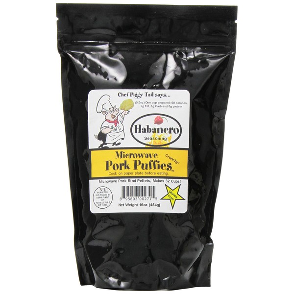 Chef Piggy Tail Microwave Pork Puffies Pork Rinds, Habanero, 16 Oz