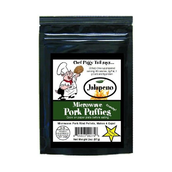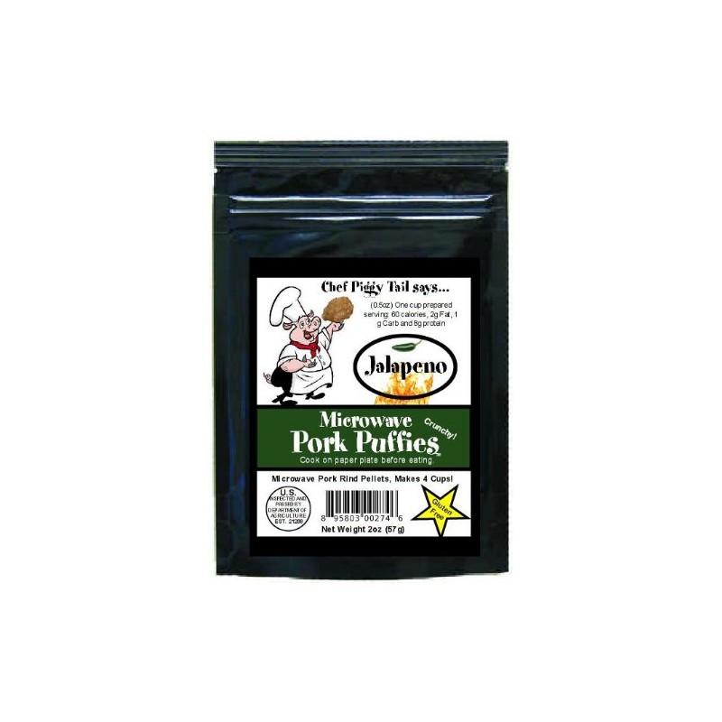 Chef Piggy Tail Microwave Pork Puffies Pork Rinds, Jalapeno, 2 Ounce