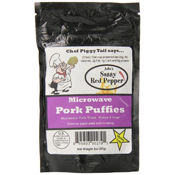Chef Piggy Tail Microwave Pork Puffies Pork Rinds, Sassy, 2 Ounce