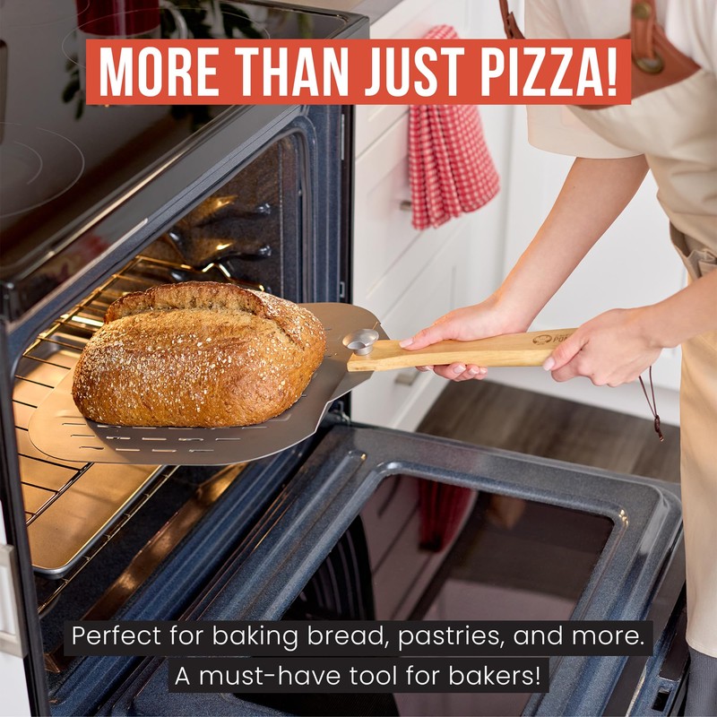 - Transfer pizzas, delicate breads, cakes, pies, pastries into an oven, wood fired oven or grill to keep from burning your baker's hand from the oven or from the hot baked goods. Perfect as a cake lifter