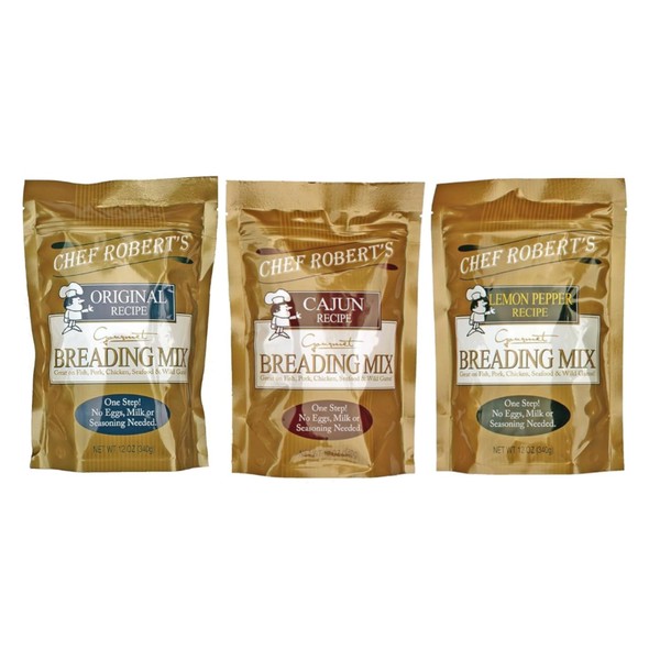 Chef Robert's Gourmet Breading Mix 3-Pack (Original, Cajun & Lemon Pepper Combo Pack)
