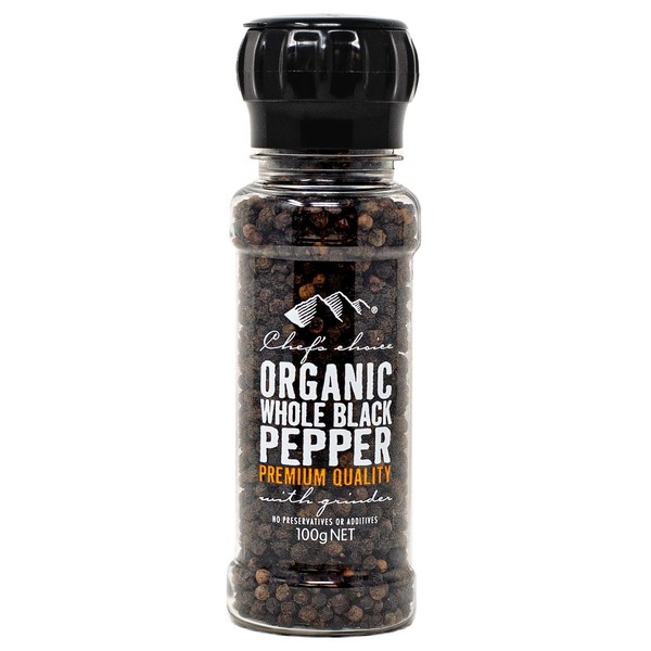 This product is 100g black pepper hole with grinder of Australian organic brand "Chef's Choice".