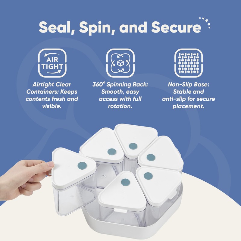 - Effortless Organization. Chef’s Path Spinning Container Set revolutionizes the way you store and access pantry essentials, snacks, spices, and more. Bring convenience and efficiency to your storage needs.