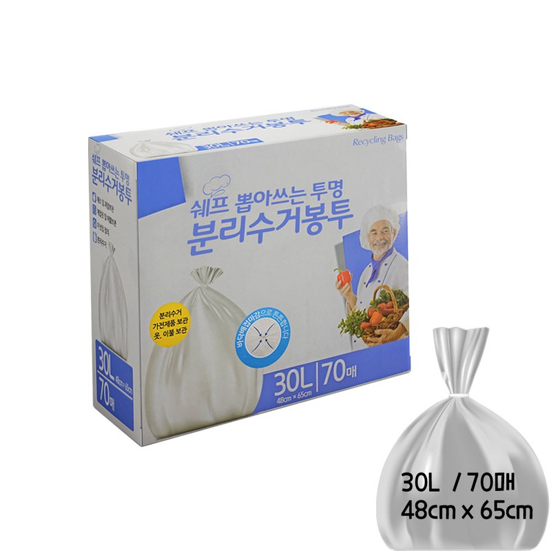 Chef’s transparent recycling bag 30L / 70 sheets (48 x 65cm) / 쉐프 뽑아쓰는 투명 분리수거 봉투 30L / 70매 (48 x 65cm)