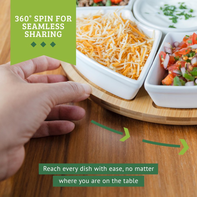 • ✅ LAZY SUSAN TACO BAR: Take your Taco Tuesday to the next level with the built-in lazy Susan ceramic serving platter! Spin the platter effortlessly to pass around your delectable creations, ensuring that everyone gets a taste of the action. It's not just a serving platter; it's a taco experience that will make your guests rave about your serving tray for party.