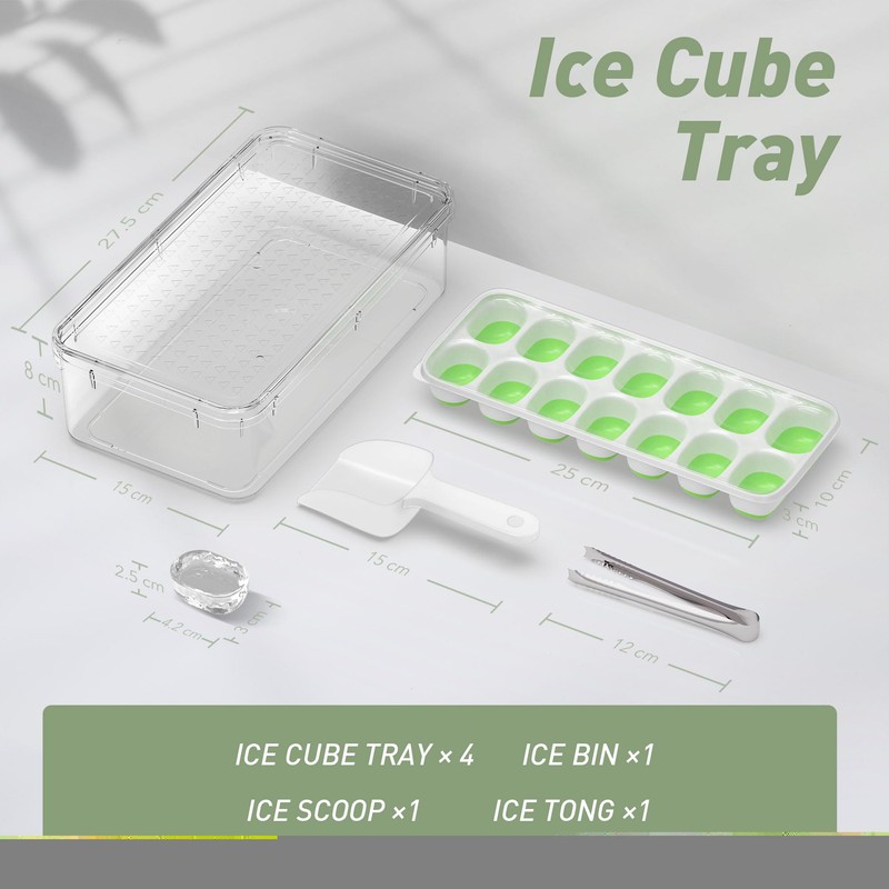 - Make Enough Ice Cubes: Four ice cube trays are included. Each tray can make 14 ice cubes at once , so you'll get 56 ice cubes in total if you use all four trays together. The package come with an ice container for storage, an ice scoop, and ice tong for daily use