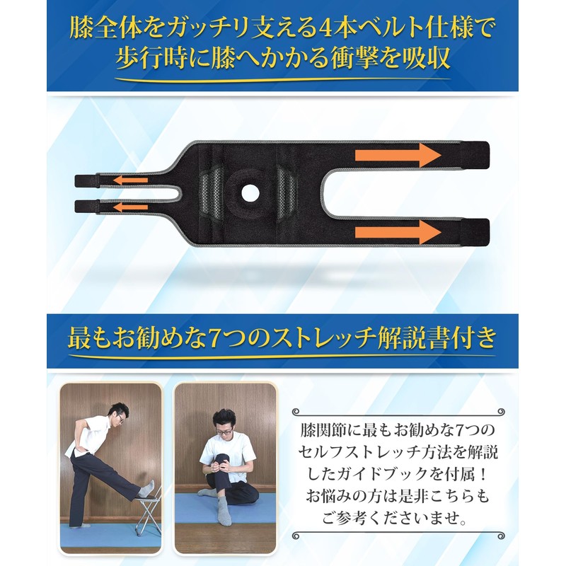 - 【4方向からガッチリ支え膝への負担を軽減!】膝関節全体をガッチリ支え4本ベルト仕様で膝へかかる負担を軽減。また膝を左右から支える4本ボーン付きで安定性も高めます。さらに膝をついた際に衝撃を吸収するEVAクッション付きの特製仕様となりまして、バレー バレーボール ランニング 等々様々な スポーツ 時にもご使用いただけます。
