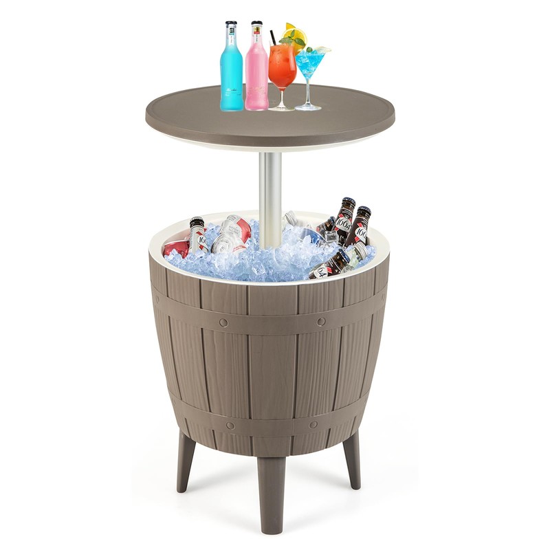 CHEFJOY 10 Gallon Cooler Table, Cool Bar Table with Height Adjustable Tabletop & Drainage Plug, 3-in-1 Cocktail Drinks & Wine, Outdoor Cooler Side Table for Backyard, Party, Poolside (Brown)