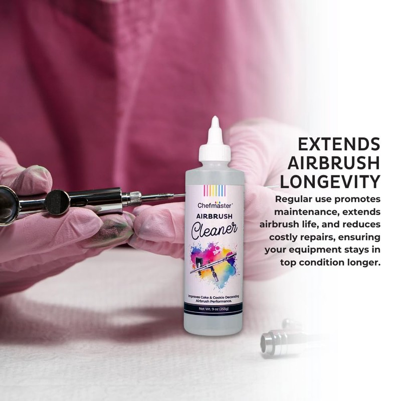 Chefmaster Airbrush Cleaner 9 oz – Removes Color Residue, Prevents Buildup & Extends Airbrush Lifespan – Compatible with All Airbrush Brands