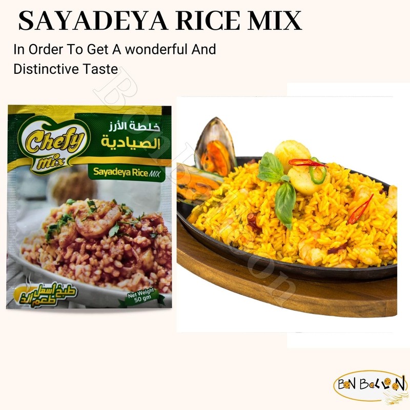 - ⏩ Chefy Mix Sayadeya Rice Mix ( 3 Pack = 5.29 oz / 150 gm ) Spice Sayadia Seasoning Sayadiyah Blend Powder Baharat Egyptian Arab Gulf Cuisine Taste Egypt Arabian Middle East Herb Herbs No Additives No Preservatives Kosher Halal حلال شيفي ميكس خلطة الأرز الصيادية