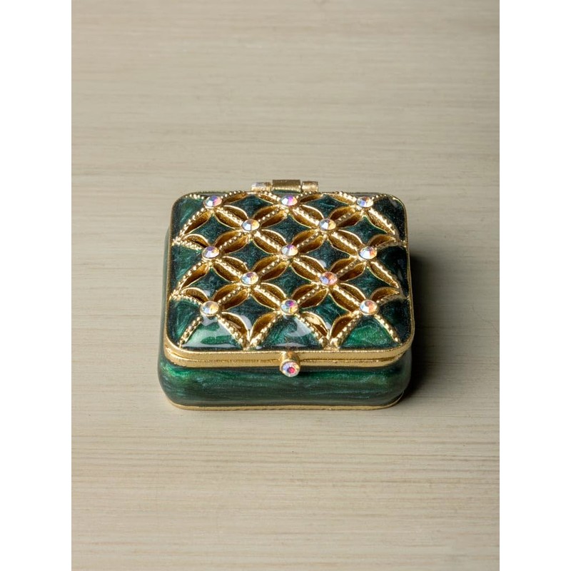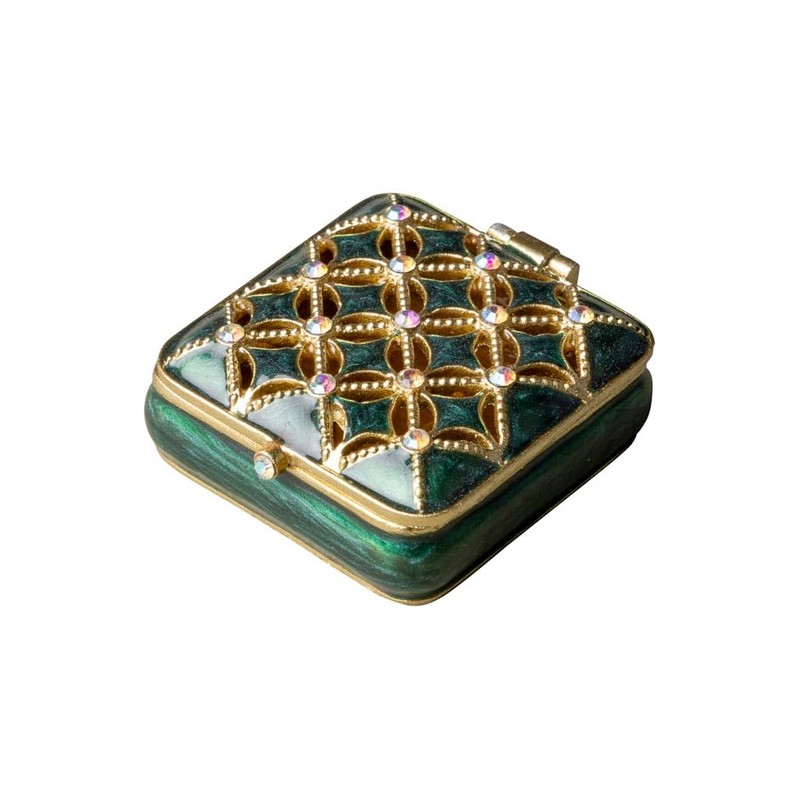 chehoma Green Enamel Pewter Tin with Magnetic Closure 5 x 4.5 x 2 cm