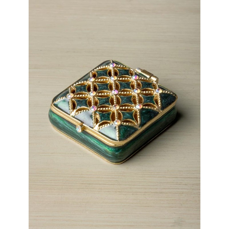 chehoma Green Enamel Pewter Tin with Magnetic Closure 5 x 4.5 x 2 cm