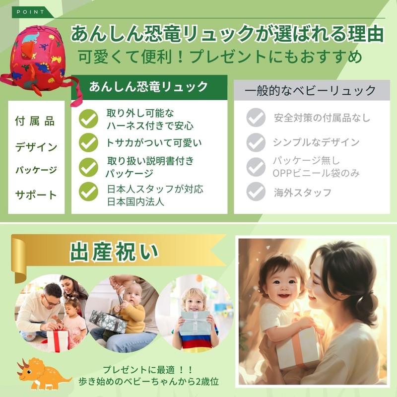 - (Safe support for the adventurous minds of energetic babies! A great ally to prevent loss, and a backpack for babies. A cheerful and curious baby. Their little steps are excited to explore a new world as a parent. But don't worry about getting lost. This lost backpack is the answer to those concerns about parents. This backpack has a dinosaur design that is perfect for toddlers aged 1 and 2 years old and small explorers