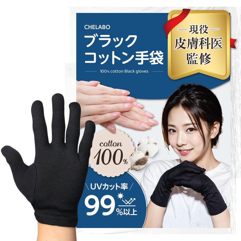 [CHELABO] Black Cotton Gloves, Protective Gloves (Black, 3 Pairs, 3L)