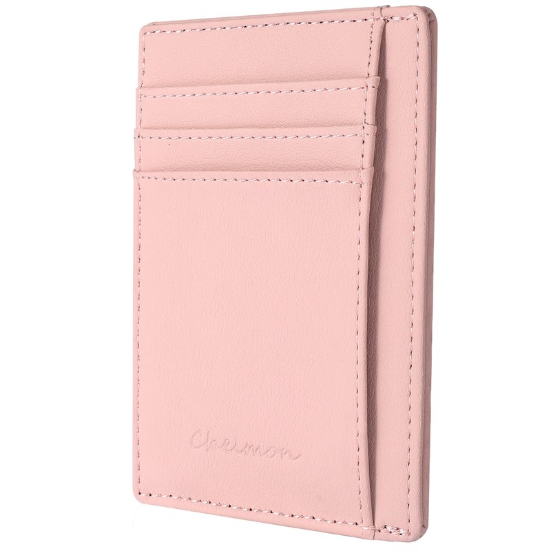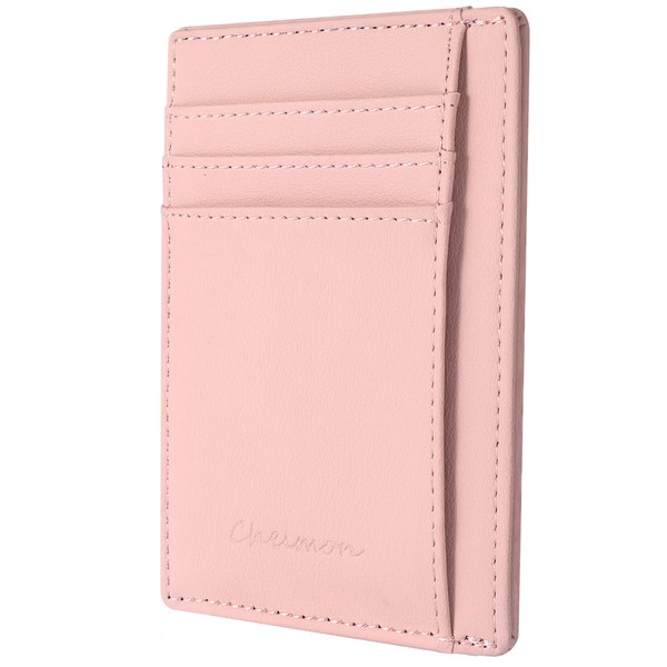 Chelmon Slim Wallet for Women, Minimalist Front Pocket RFID Blocking Credit Card Holder, Pink