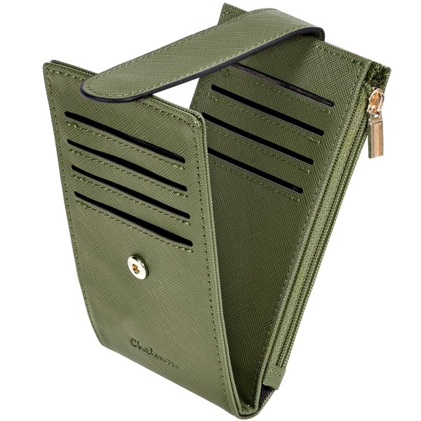 Chelmon Womens Wallet Slim RFID Blocking Bifold Multi Card Case Wallet with Zipper Pocket (Green Army)