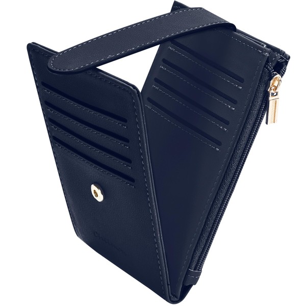 Chelmon Womens Walllet Slim RFID Blocking Bifold Multi Card Case Wallet with Zipper Pocket, Navy Blue, One Size, Minimalist