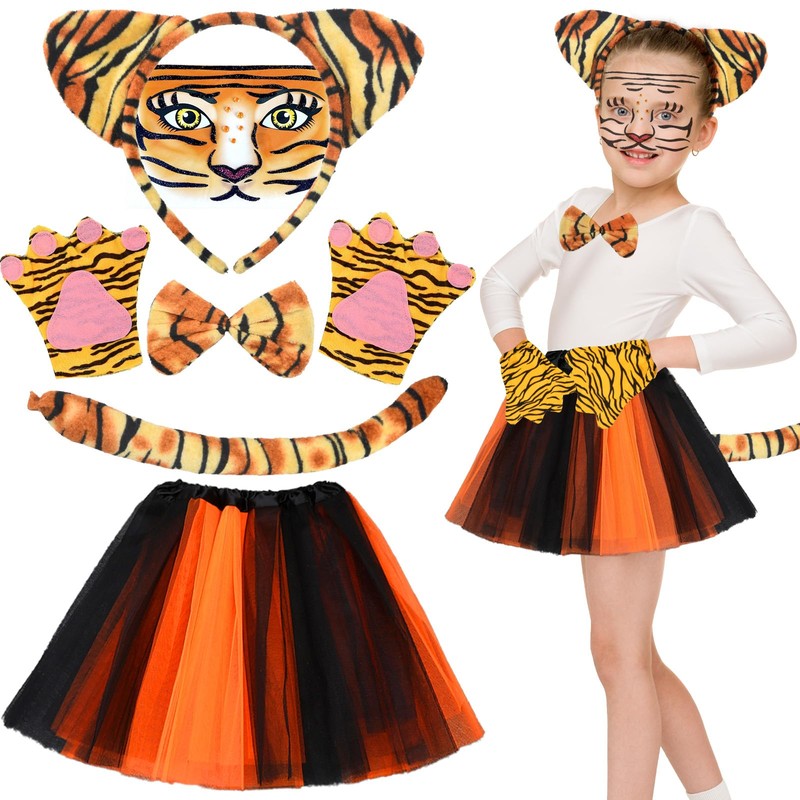 - Perfect tiger costume: carnival tiger costume children includes: 1 x tiger bow tie, 1 x tiger headband, 1 x tiger tattoo, 1 x orange black tutu skirt, 1 x tiger tail, 1 x tiger gloves. A beautiful animal costume children's set with which children can transform into a charming tiger children in no time. The vibrant, realistic, tiger costume for women is very popular with children and is suitable for both women and girls.