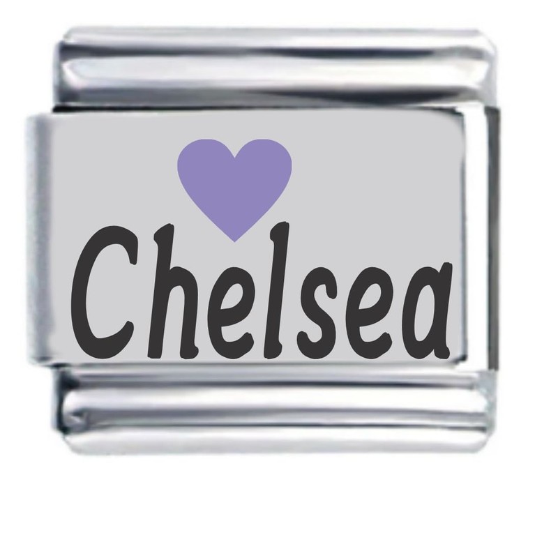 Chelsea Purple Heart Laser Name Italian Charm Link